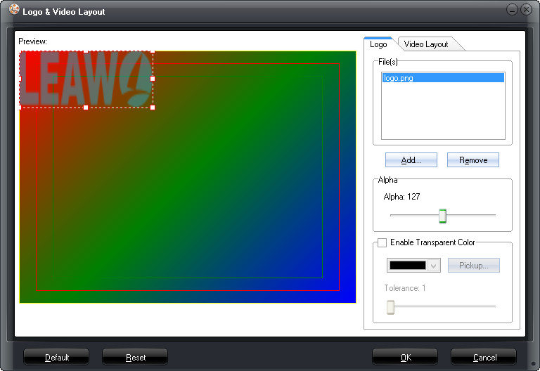 By clicking the Watermark tab, you could enter the Logo & Layout window to set image watermark as logo and determine the output Video Layout. You could add a logo to protect your PowerPoint presentation copyright.