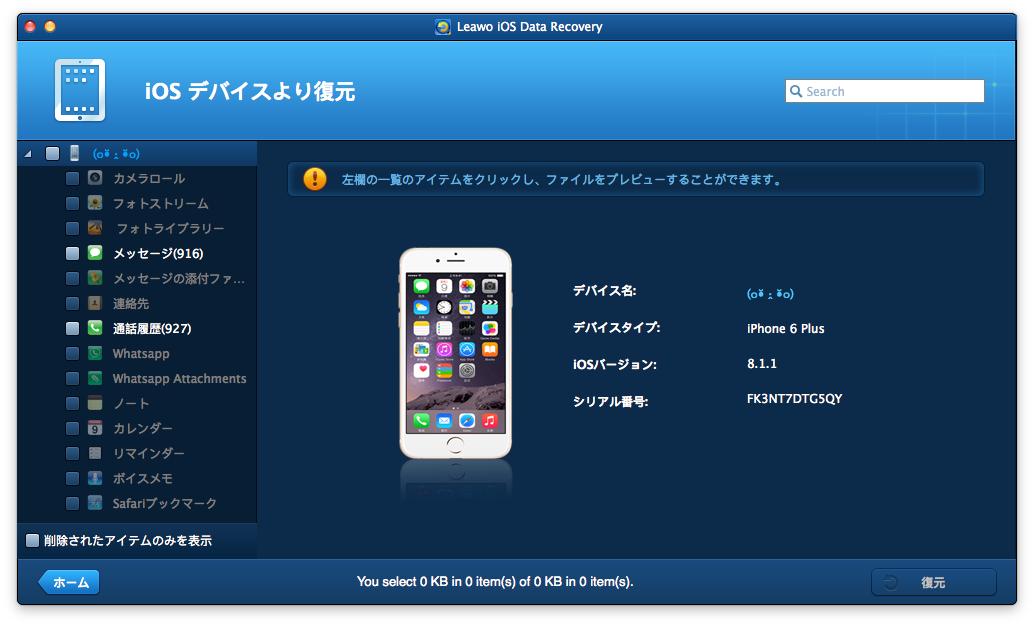 Leawo iPhoneデータ復元 for MacはiOSデバイス上のデータを安全、簡単、完全に復元できるiOSデータ復元ソフトです。iPhone 4以降のすべてのiPhone端末、すべてのiPad端末やiPod Touch端末に対応できます。つまり、Mac用iPhoneデータ復元ソフト、Mac用iPadデータ復元ソフト、Mac用iPod Touchデータ復元ソフトとして使用可能です。Leawo iPhoneデータ復元 for Macは14種類のファイル形式の復元に対応しています。