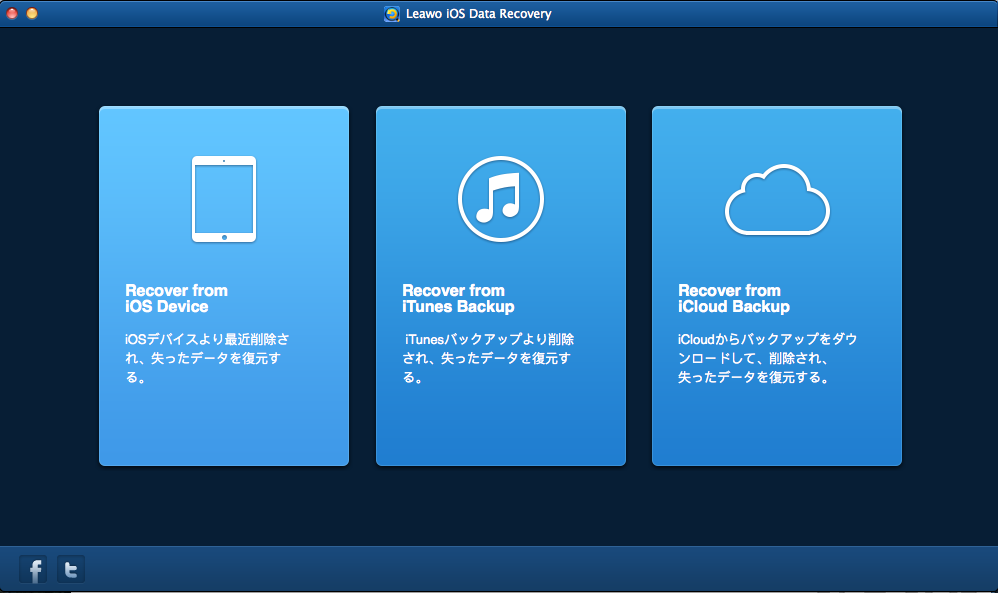 Leawo iPhoneデータ復元 for Macは3つの復元モードを提供します。ユーザーは状況に応じてデータ復元方法を選択できます。iOS端末本体から直接復元モードでは、事前バックアップなしでもデバイス上のデータを復元します。iTunesからデータ復元モードではiTunesバックアップからデータを復元します。iCloudからデータ復元モードではiCloudバックアップからデータを復元します。
