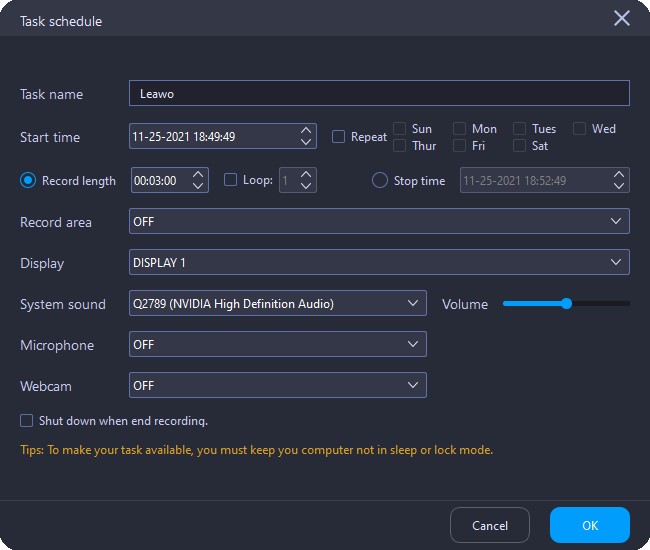 2. To make sure your task available, you must keep your computer not in sleep or lock mode.