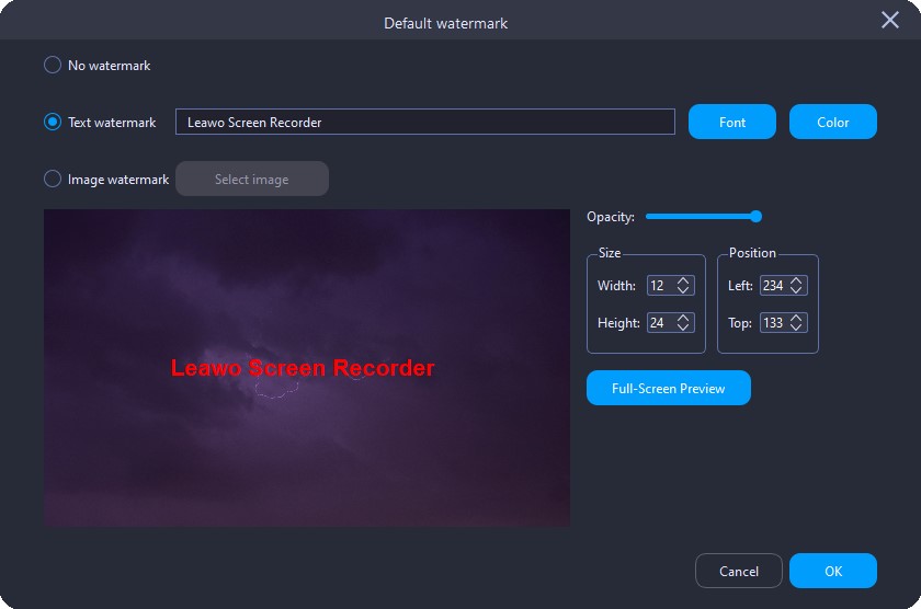 To protect your original content, there is a built-in watermark editor in Leawo Screen Recorder, empowering you to freely add text or image watermarks to your recordings.