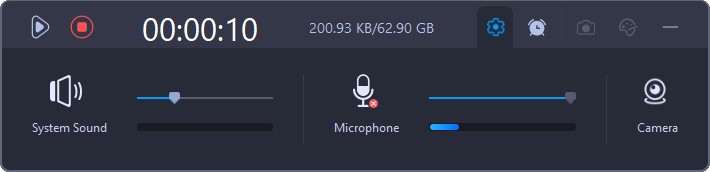 If you want to enable or disable "System Sound" or "Microphone" during the webcam recording process, click the settings button , and then click the icon of each feature to enable or disable the corresponding feature.
