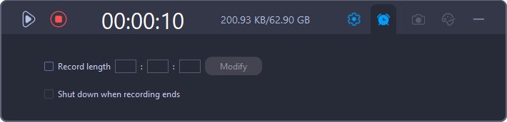 To schedule the recording process, click the clock button in the top menu bar, and select the checkbox before "Record length". Then, enter time in the boxes, or enter time by clicking the "Modify" button