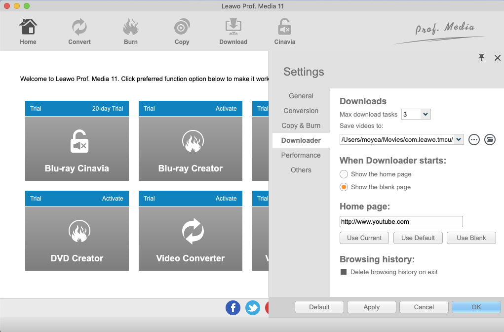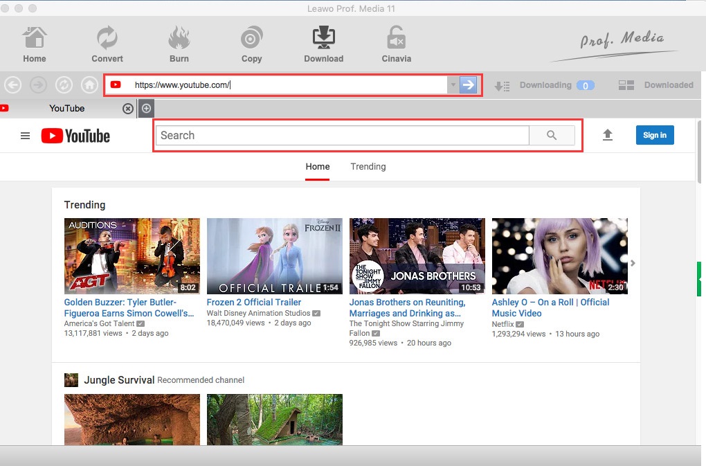Click the Download button from the menu-bar on the top or click Video Downloader to open the video downloader module. By default, it will go to YouTube.com. You can directly enter or paste a new URL in the address box on the top to go to a new website.