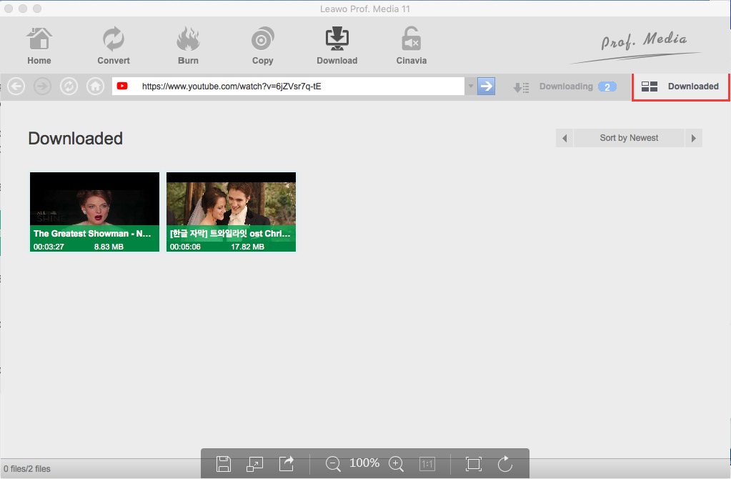 The videos you are downloading can be found in the Downloading section. After the program finishes downloading the videos, you can find the downloaded videos under the “Downloaded” section. You could play back and delete downloaded videos, reorder downloaded videos by name, date, size, etc. Also, you could right-click downloaded videos and choose Add to Convert or Add to Burn to add the videos to the Video Converter and Video Burner module.