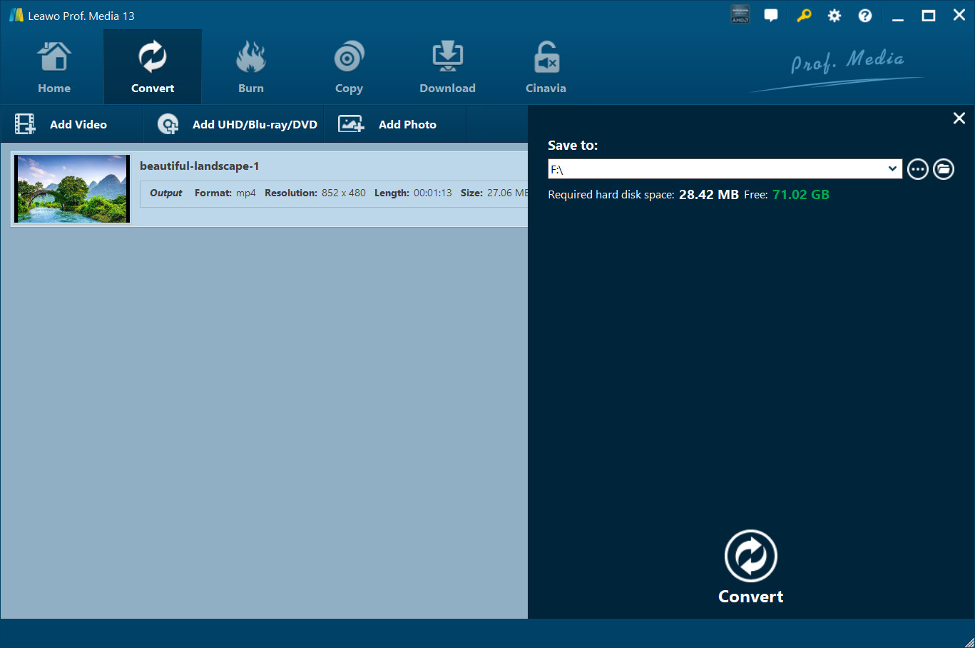 Required hard disk space is listed as well to indicate you whether your computer hard drive gets enough space to save output file.