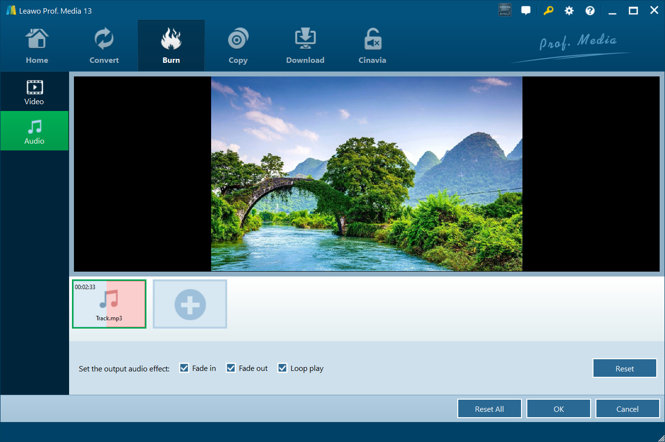 Under the "Audio" tab, you could firstly click the Add Music button