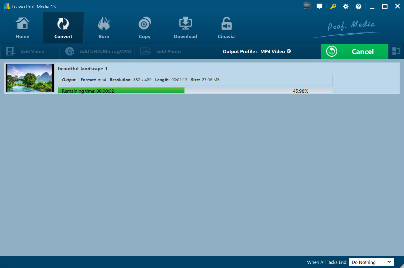 On the converting panel, you could cancel converting task by clicking the big green