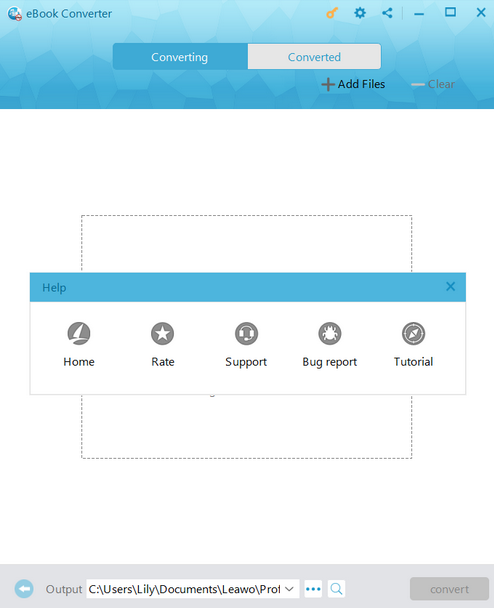 Under “Help” button, you are allowed to visit the product page of Leawo Prof. DRM, write a user review of Leawo Prof. DRM, get technical support from Leawo Software team, report program problems during usage, and learn how to use Leawo Prof. DRM.