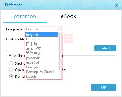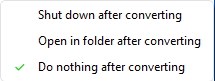 Under “Preference” section, you can set program action after converting: Shut down after converting, Open in folder after converting, and Do nothing after converting.