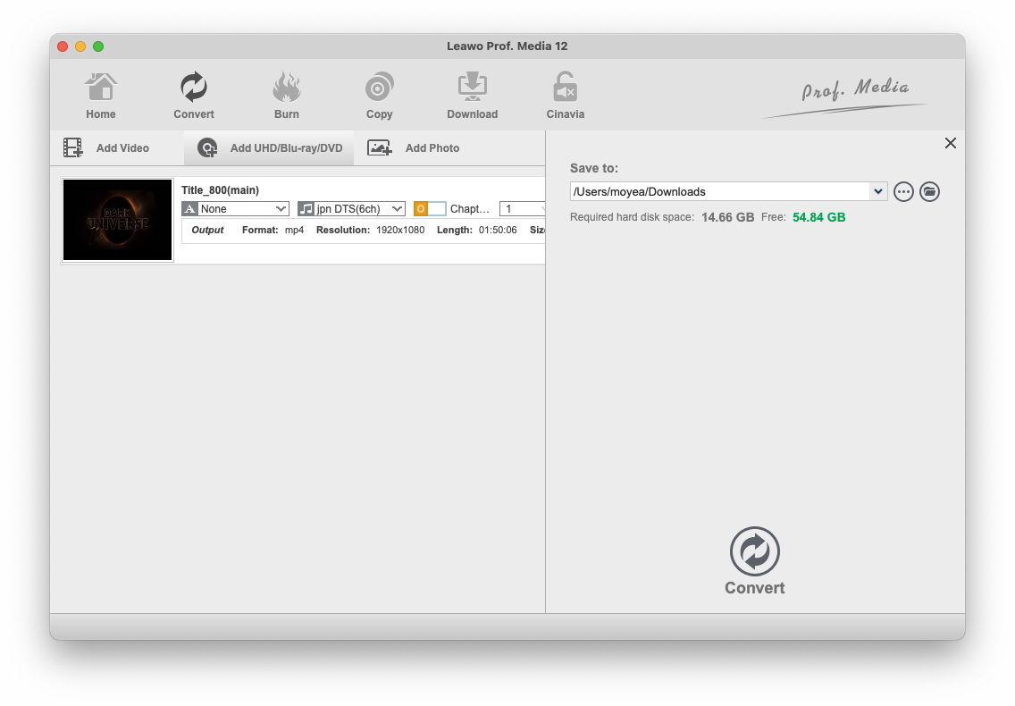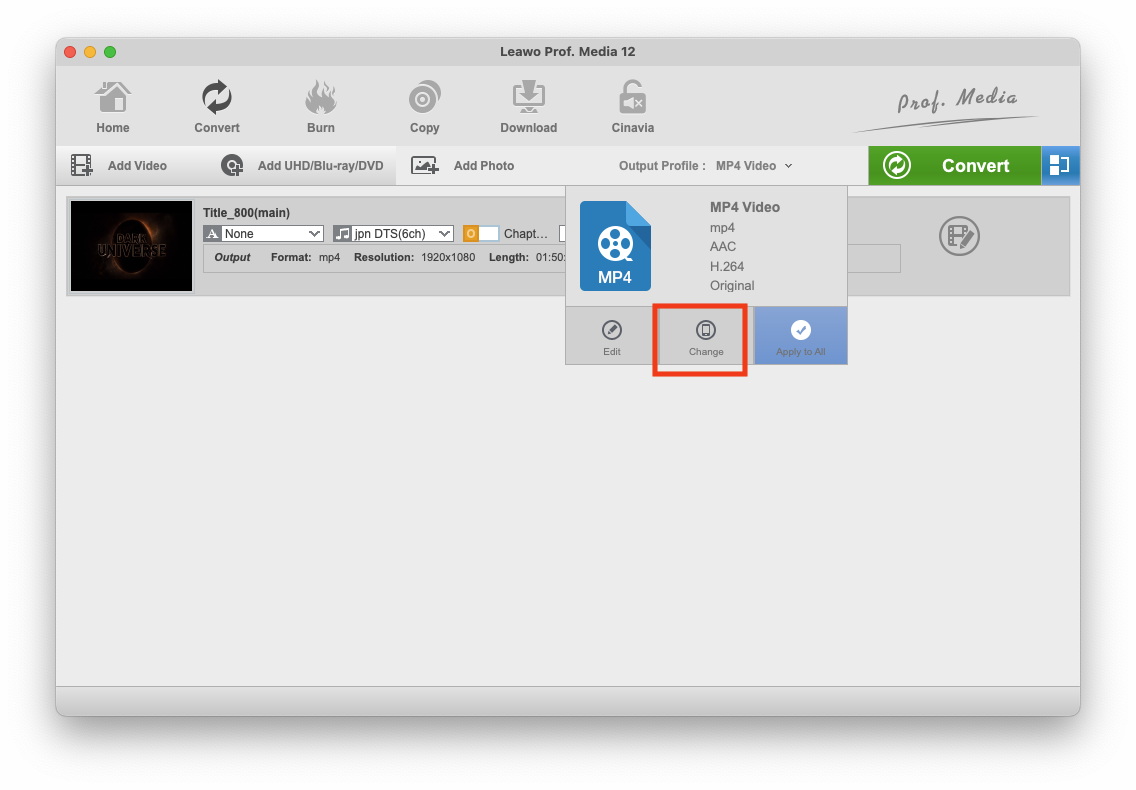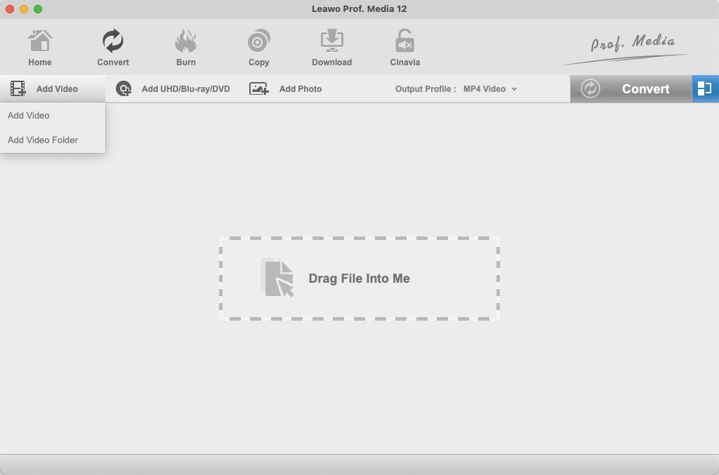 Launch Leawo Video Converter Ultimate to enter the home page, where you need to click “Convert” button on the sub-menu to enter the converting interface.