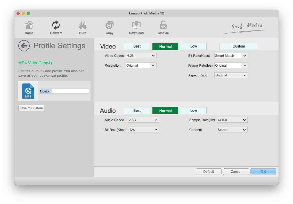 After setting parameters, you could click "Save to Custom" option to add customized profile to "Custom" group.