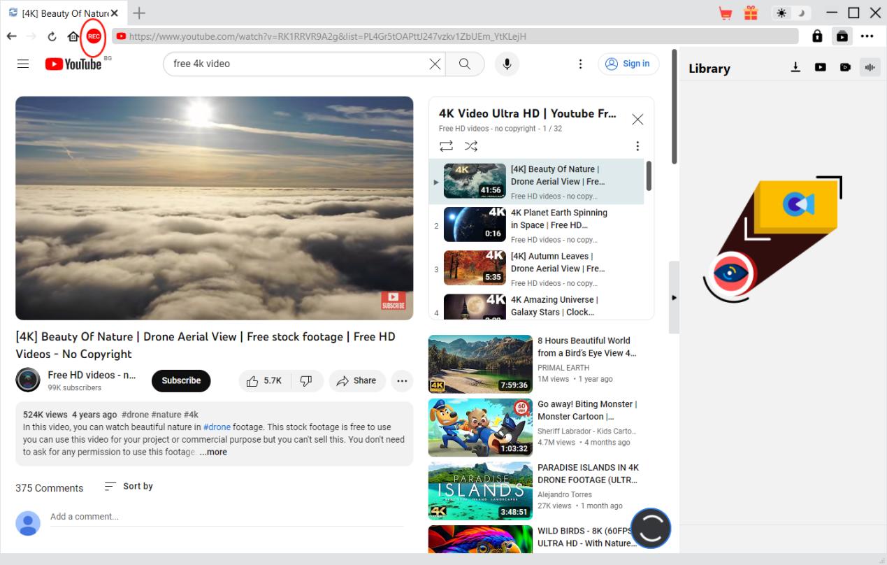 Open the target video you want to record within CleverGet and play it back. You could see a red REC icon