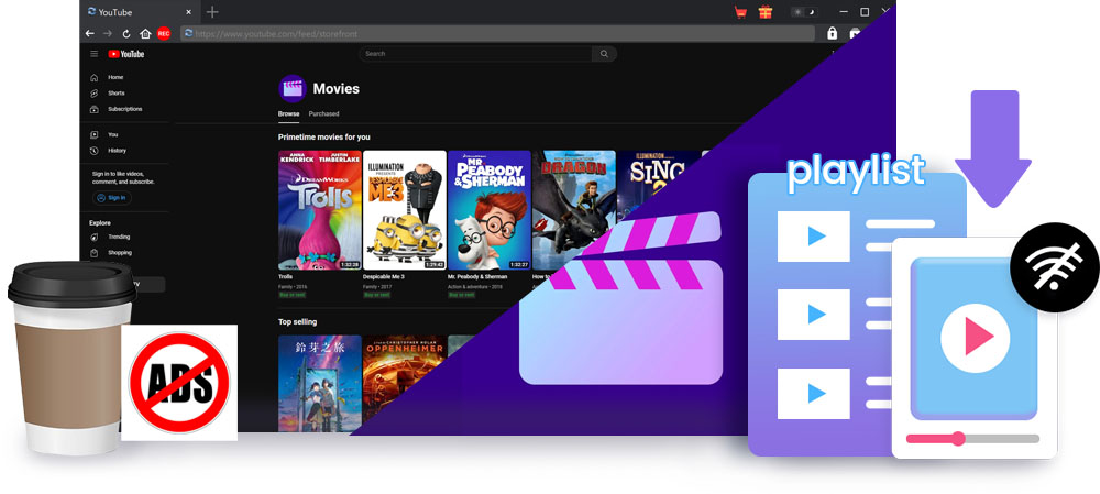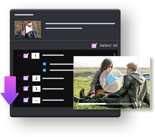 從幾乎所有視訊網站下載高達 8K 解析度的影片和節目/直播,包括 YouTube、Amazon Prime、Facebook、Twitter、TikTok、OnlyFans 、 MAX 、 Netflix 、 MissAV、Disney+、Apple TV+、 Hulu等,下載的視訊有選定的字幕和音軌;從各種串流網站批量下載電視劇集;錄製串流媒體視訊,包括來自幾乎所有網站的受 DRM 保護的串流媒體視訊。