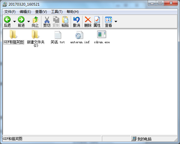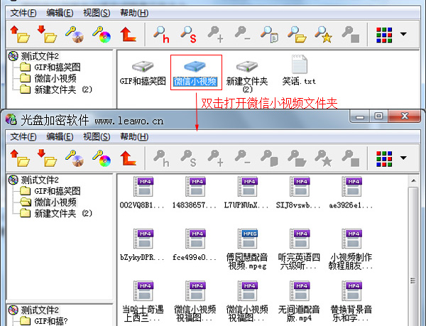 输入密码之后,光盘的内部情况是只显示了,设为主要目录的微信小视频文件夹里的内容,看不到已经隐藏了的GIF和搞笑图这个文件夹的内容。