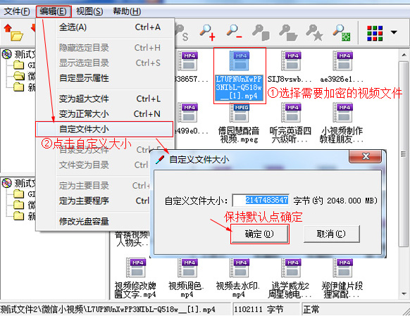 选择你想变大的文件,点击菜单栏上的“编辑”选择“自定文件大小(或点击变为超大文件按钮)”即可。在弹出来的自定义文件大小框中可以保持默认的文件大小点击“确定”,也可以自己给文件设置大小数值。如果将该镜像文件刻入光盘,超大文件将显示为2GB,而实际视频大小并不是那么大。