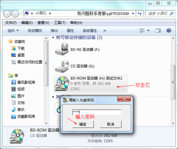 图标,双击测试文件2的光盘,并输入设置好的密码。