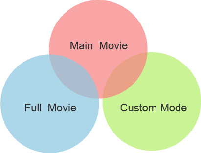 為了滿足您複製光碟的不同需求,此藍光複製程式為您提供了 3 種複製模式。 「完整電影」模式複製整張光碟。 「主要電影」模式執行「僅電影」備份。 「自訂模式」可讓您選擇所需的標題進行複製。