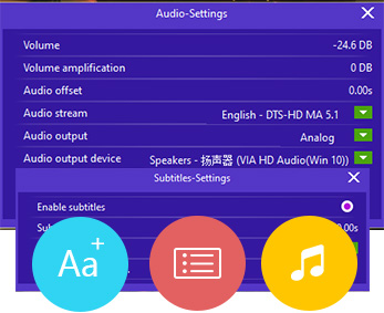 以極為簡單的方式,展現多種可操控的設定。 Leawo免費藍光播放器軟體雖然有提供預設的設置,但並不影響您基於個人偏好去修改這些設置。這些設定可以讓您在Windows電腦上更好地觀看藍光、DVD、視訊、音訊、ISO鏡像檔案等。所有這些使得它成為最佳免費播放器軟體。