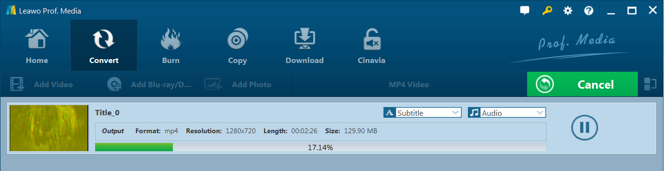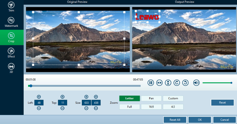 Leawo 藍光轉檔器根據個人設定保留原始 Blu-ray/DVD 內容中的所有圖像元素。它可以保持與來源藍光/DVD內容相同的影像像素密度、寬高比、影像幀等。