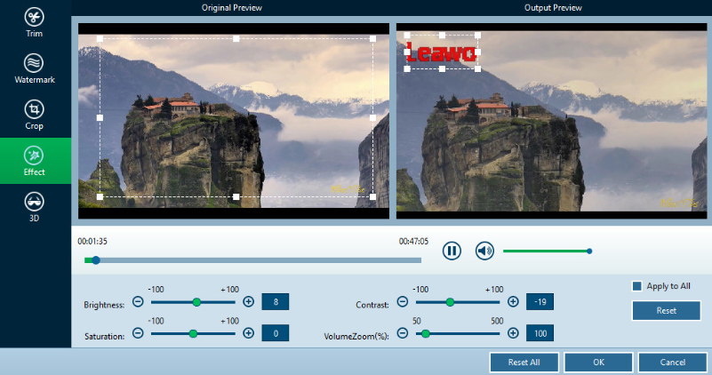 Leawo 藍光轉檔器讓您可以在將藍光/DVD 轉換為影片之前編輯藍光/DVD 影片以獲得更多享受,包括:檔案合併、媒體編輯、 3D 電影創作、參數調整等。