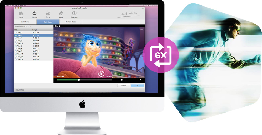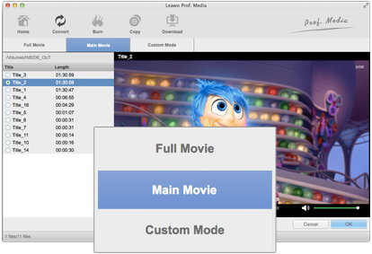 採用世界一流的光碟讀取和解密技術, Leawo 適用於 Mac 的藍光到 MKV 轉檔器能夠在 Mac 上快速加載、讀取和翻錄藍光/DVD 到 MKV。與類似的藍光到 MKV 轉換應用程式相比,這款專業的藍光到 MKV Mac 轉檔器的藍光/DVD 轉換速度快了 6 倍。在來源藍光/DVD內容載入方面,該程式提供了三種檔案載入模式:完整電影、主電影和自訂模式,因此使用者可以自由選擇目標標題進行匯入,以減少藍光/ DVD內容的載入。載入和轉換時間。而且,當需要再次載入相同內容時,程式的緩衝記憶體有助於縮短載入時間。