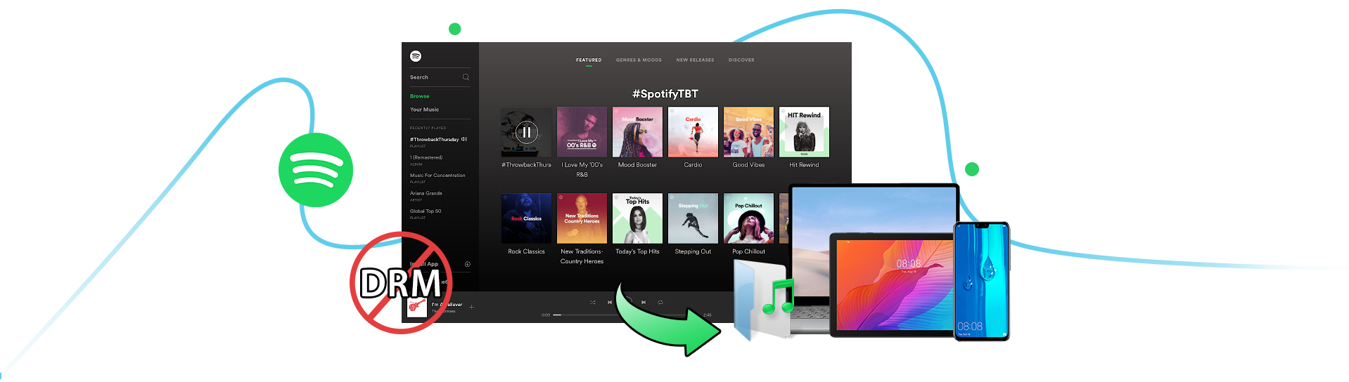 內建 Spotify DRM 刪除功能, Leawo Prof. DRM Spotify Converter 徹底刪除 Spotify 音樂的 DRM 保護,而不會損壞音樂。用戶可以輕鬆獲得無 DRM 的 Spotify 歌曲。