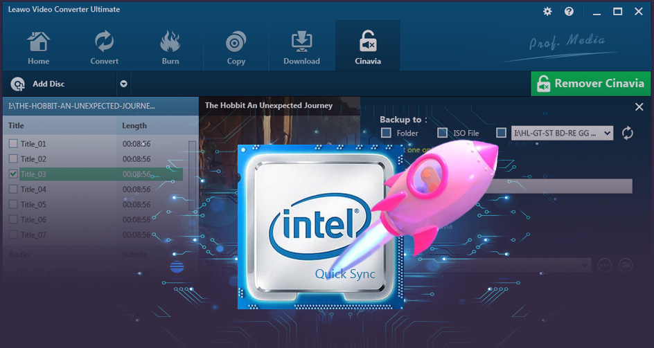 在Intel Quick Sync等GPU顯示卡加速技術的支援下, Leawo DVD Cinavia 移除器可快速移除 Cinavia 浮水印並輸出無 Cinavia 的 DVD 內容。易於使用的介面即使對於新手也很友好。