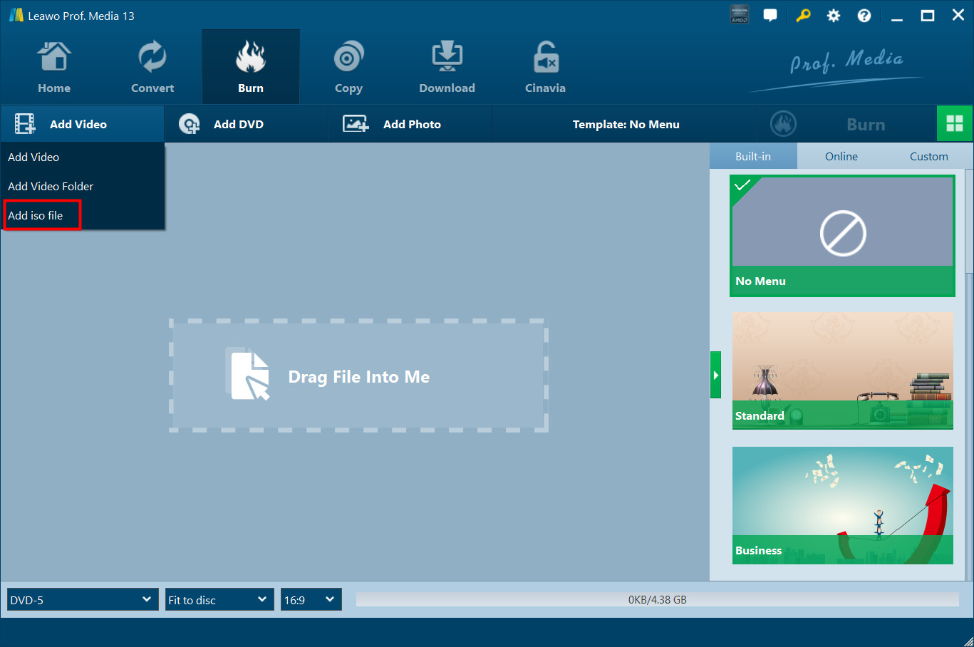 每填寫完資料或做任何更動請務必點擊 添加視頻 按鈕,然後單擊 添加 ISO 文件 按鈕,選擇電腦上要匯入 DVD 燒錄機的 ISO 映像檔。