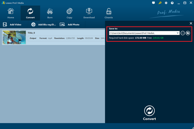發佈會 Leawo Prof. Media 然後打開“轉換”模組。然後,點擊「新增藍光/DVD」按鈕從您的電腦新增藍光光碟、資料夾和/或 ISO 映像檔。