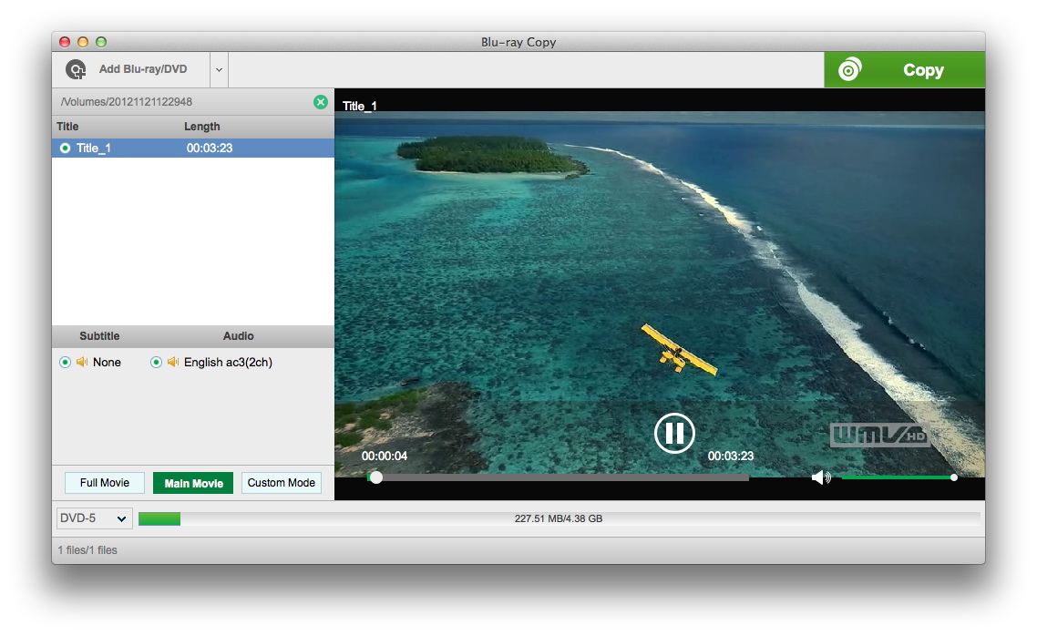 | Blu-ray/DVD 內容備份的複製模式 | 完整電影、主要電影和自訂模式 | |
