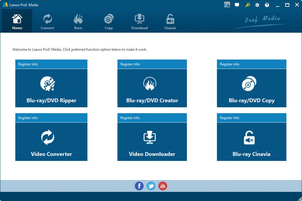 請按照以下指南了解如何使用 Leawo Prof. Media 轉換藍光/DVD/影片檔。首先,下載並安裝 Leawo Prof. Media 在你的電腦上