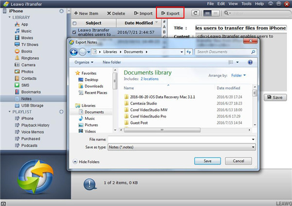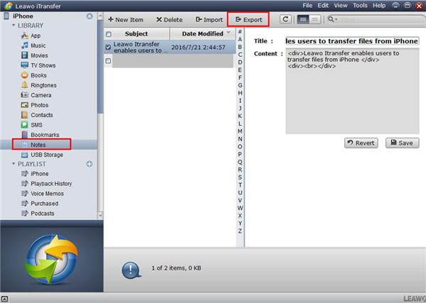 正如我上面提到的,使用 iTunes 將筆記從 iPod 傳輸到 iPhone 有一個很大的缺點。因此,我建議你使用 Leawo iTransfer 完美地解決這個問題。該程式運行速度很快,可以幫助您將筆記和其他檔案從 iPod 傳輸到 iPhone。這個解決方案的步驟很簡單,可以幫助您直接從 iPod 選擇筆記到 iPhone 進行傳輸。