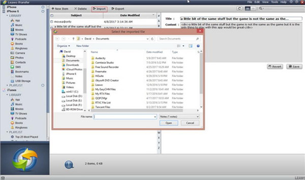 匯入後,您 iPod 上的筆記將完美地傳輸到您的 iPhone。 Leawo iTransfer 可以幫助您方便地傳輸14種文件和數據,例如照片,筆記,電影等。該程式功能強大,將為您提供很多幫助。