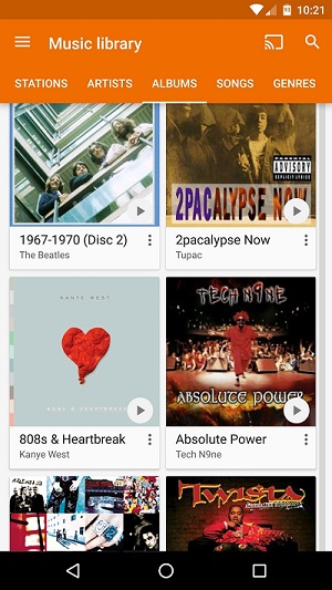 第一步: 在 Android 裝置上下載 Google 音樂應用程式。使用同一帳戶登入 Google 音樂。然後,您就可以存取從 iPad 傳輸的所有音樂檔案。