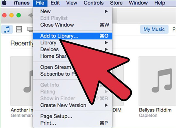 步驟 1:在 Mac 上啟動最新版本的 iTunes,並使用 USB 連接線連接 iPod。然後在 iTunes 介面中導覽至「檔案 > 將檔案新增至庫」。新增的歌曲將出現在 iTunes 的「音樂」庫中。