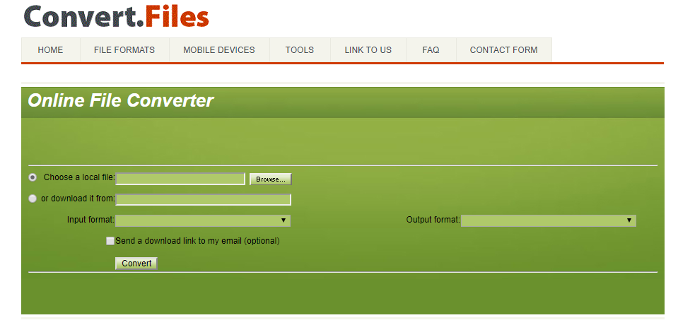 Convert.Files 也是一個免費的線上媒體轉換工具,類似於 Online-Convert。它提供了簡單的使用者介面和直覺的互動風格。與 Online-Convert 一樣,Convert.Files 中也提供更多文件轉換功能,例如電子書文件、文件文件、簡報文件、繪圖文件等。在執行轉換任務時,Convert.Files 提供了不錯的轉換速度,並提供了透過電子郵件通知使用者的選項。然而,Convert.Files 的一個主要缺點是,線上轉換工具不夠智能,無法自動偵測輸入檔案格式。這意味著您必須在上傳原始文件後指定輸入文件格式。但除了這點小小的不便之外,Convert.Files 實際上是一款非常適合日常使用的線上檔案轉檔器。這是有關如何使用 Convert.Files 在線將 3GP 轉換為 WMV 的指南。