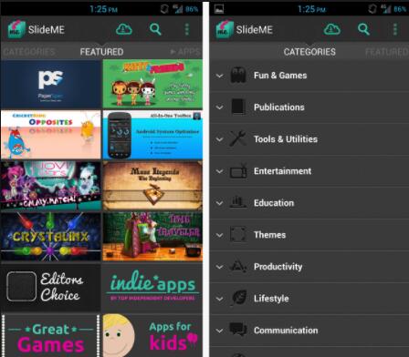 - 在你的安卓手機上下載SlideMe或其他應用程式商店並開啟應用程式;
