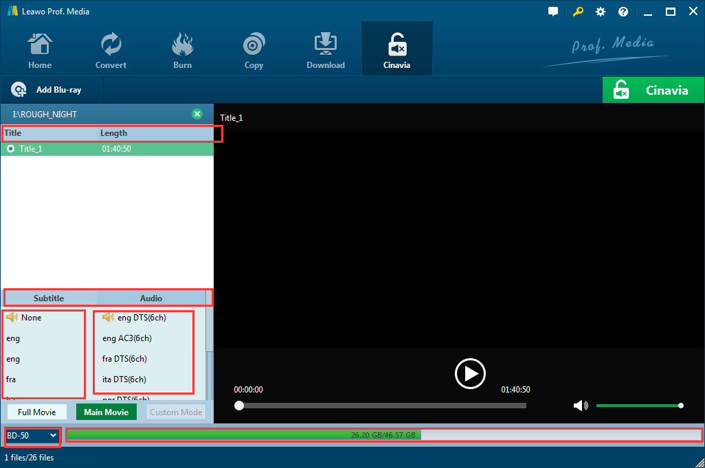 與 AACS、BD+ 和 MKB 保護一樣,Cinavia 是另一種類型的電影保護,保留在音軌上,以防止透過 Cinavia 相容播放器偵測錄製的浮水印進行所有複製。未經授權的受 Cinavia 保護的副本的播放可能會被停止或音訊可能會被靜音。關於 Cinavia 保護, Leawo 藍光Cinavia消除器 可以為您提供最佳的解決方案,輕鬆消除令人不安的 Cinavia 浮水印保護。它的突出之處在於它不僅可以去除 Cinavia,還可以同時去除 AACS、BD+ 和 MKB 保護。無需使用額外的藍光解碼工具來解除AACS、BD+和MKB的藍光保護。使用此保護刪除工具,您可以流暢播放無 Cinavia 的藍光影片。