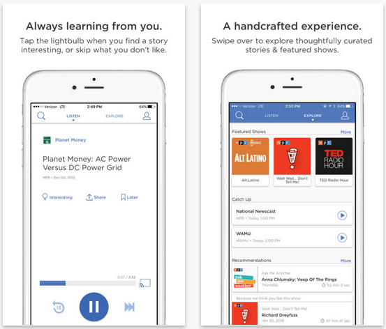 如果您剛度過了辛苦的一天,閱讀新聞可能會讓人筋疲力盡。但透過 NPR One,您可以收聽新聞而不是閱讀新聞,這樣您就可以自由地將注意力集中在螢幕上的文字之外的其他事情上。它以大約三到五分鐘的短片報導了頭條新聞。它還提供來自全國各地的不同 NPR 電台供您收聽。它是iPhone用戶收聽最新新聞的最佳新聞應用程式。