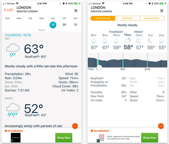 AccuWeather 是一款適用於 iPhone 的天氣應用程序,可在所有 iOS 裝置(包括 Apple Watch)上提供同樣卓越的準確性和出色的體驗。這款 iPhone 天氣應用程式還提供未來兩小時的每分鐘降水量預報,超級本地化到您的確切街道地址或 GPS 位置。借助 iPhone 最佳天氣應用程序,您將能夠找到有關日出和日落的資訊、過敏資訊以及與當前天氣週期相關的新聞和影片。