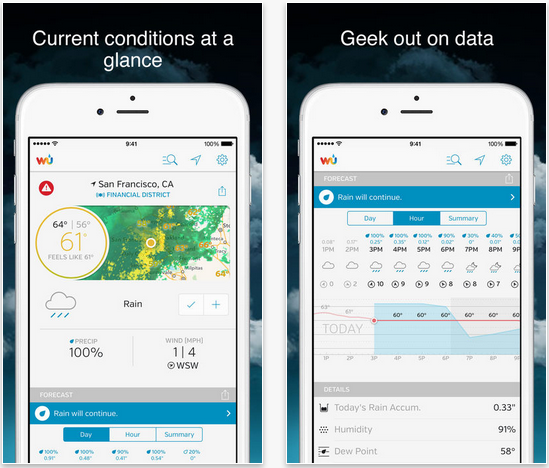 也就是說,Dark Sky 是 App Store 中 iPhone 上最好的天氣應用程式之一。這款適用於 iPhone 的精彩天氣應用程式可以提前一小時一目了然地告訴您何時會下雨(或下雪),這樣您就可以自由地遛狗或出去吃午飯,並且知道自己會保持乾燥。更重要的是,透過這款天氣應用程序,iPhone 用戶還可以探索您所見過的最美麗的天氣動畫,無論是向前還是向後。為《黑暗天空》的預測提供支援的技術也使我們能夠製作世界上第一個完美流暢的雷達動畫。