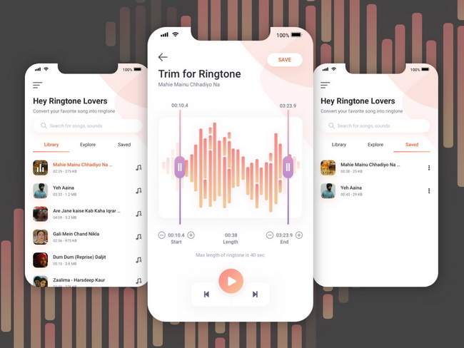 Ringtone Maker 123 這個應用程式可讓您將任何鈴聲轉換為 MP3 或將 iPhone 上的 iTunes 音樂免費設為鈴聲。它具有真實的波形,並指示歌曲正在播放的位置。此外,您可以使用多種語言,例如英語、荷蘭語、法語、義大利語、日語、葡萄牙語、俄語、簡體中文、西班牙語。此應用程式適用於 iPhone、iPad 和 iPod touch。