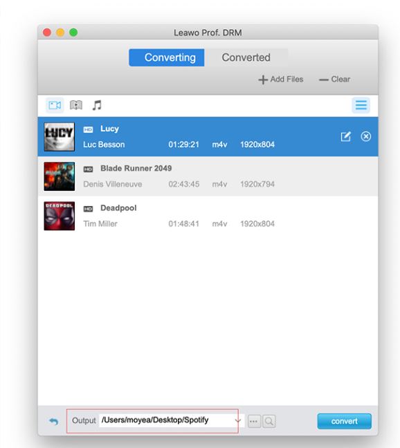 設定好輸出目錄後,點選輸出目錄設定列旁的「轉換」按鈕即可開始轉換影片。一段時間後,原始M4V視訊檔案的DRM保護將會被刪除,這使得它成為一個可以自由用於傳輸的新檔案。