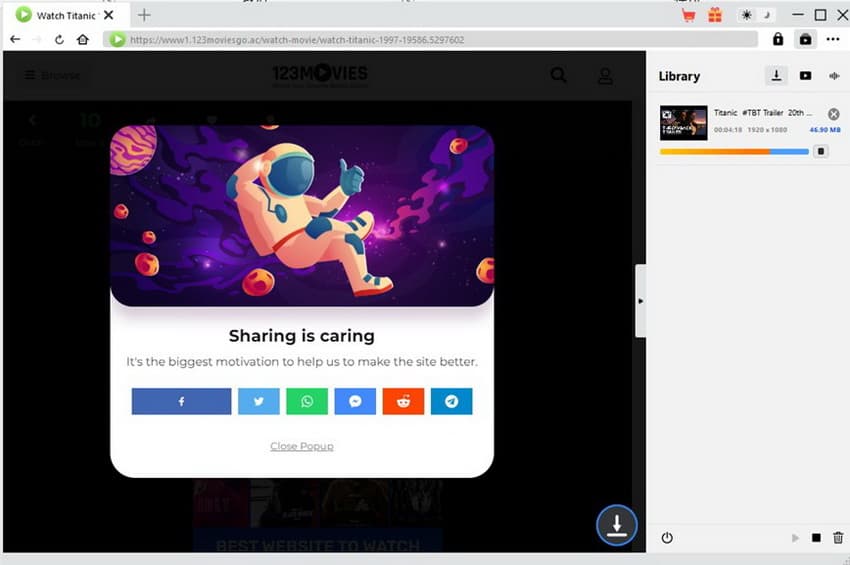 下載開始後,您可以在右側看到一個彈出側邊欄,其中顯示了詳細的下載過程和下載結果。您可以點選「停止”圖示以停止正在進行的任務或點擊“關閉”圖示結束任務。