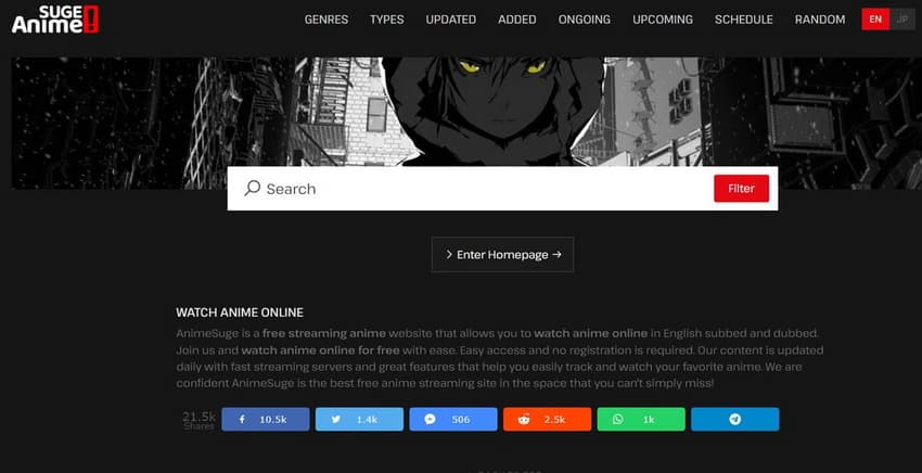 日本動漫Suge 提供各種動漫,包括英文配音節目。無論您在尋找什麼,您都很有可能在 AnimeSuge 上找到它。此外,這個免費的動漫網站具有簡單且用戶友好的介面,可讓您輕鬆找到並欣賞您最喜歡的動漫節目和電影。您可以在 AnimeSuge 上免費在線觀看動漫,無需任何註冊或付款。