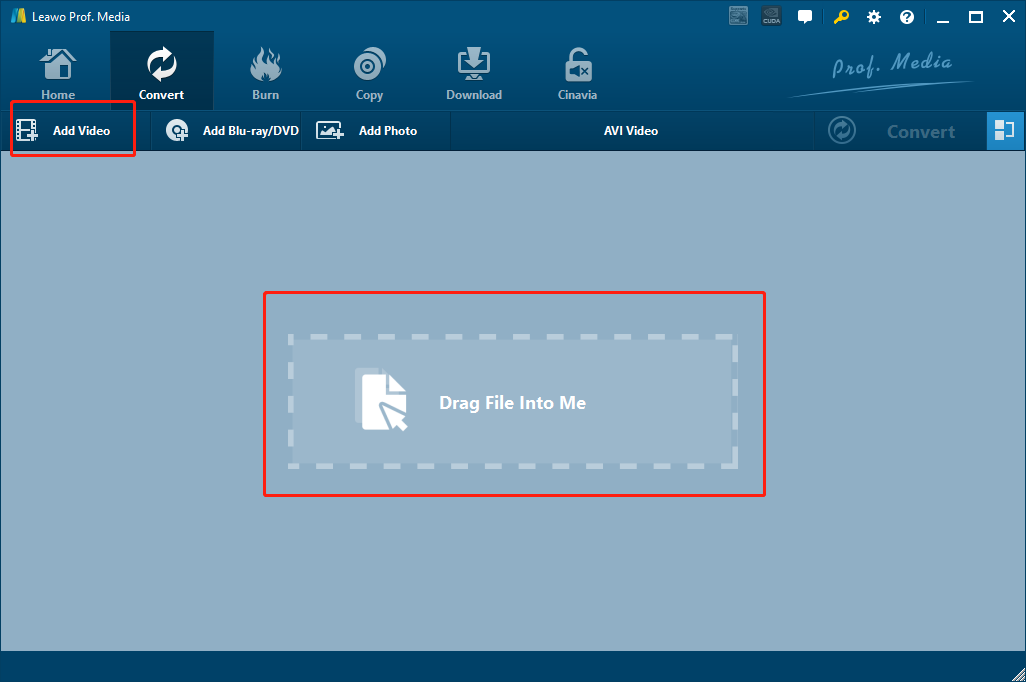 第一步: 下載並啟動 Leawo 影片轉檔器。在程式首頁點選“影片轉檔器”,進入“影片轉檔器”功能模組。要匯入來源影片文件,只需將影片拖放到程式介面的中心,或點擊「新增影片」按鈕並手動找到來源影片檔案。