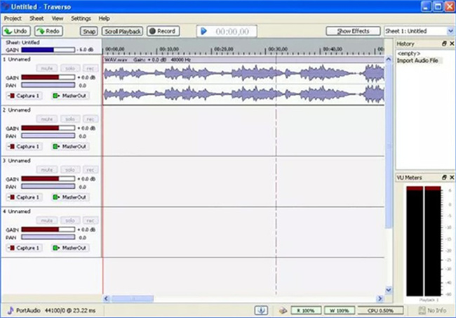 Traverso 也是一款免費的錄製工具,具有多種選項,可讓您輕鬆錄製檔案。它還允許用戶根據自己的需求編輯錄製的音訊檔案。對於 CD 燒錄,您也可以信賴該軟體。您會對它的多種設定供您選擇感到非常滿意。
