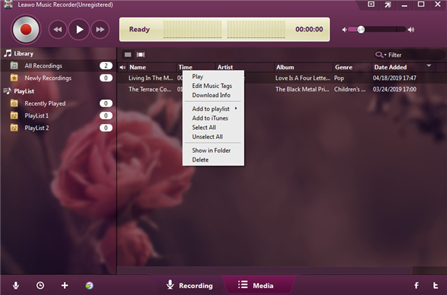 Leawo Music Recorder是一款功能強大的音樂和音訊錄製工具,可保持原始音訊品質。它在世界各地都相當有名。它可以錄製來自不同線上平台的音頻,也可以錄製輸入的電腦音訊。它的分享功能也很棒,只需點擊一下就可以將錄製的音訊檔案直接上傳到iTunes。