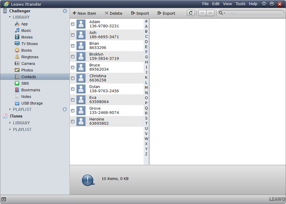 上面提到的 10 個 iPhone 最佳聯絡人應用程式實際上是基於 iPhone 應用程式。實際上,您也可以透過電腦管理 iPhone 聯絡人。你可以 在 Mac 和 PC 上透過 iCloud 合併 iPhone 聯絡人,並在電腦上刪除 iPhone 中的聯絡人。然而,在 Leawo iTransfer,您可以讓 iPhone 聯絡人管理更加輕鬆。作為專業的iOS資料傳輸和備份工具, Leawo iTransfer 不僅可以幫助你 將聯繫人從iPhone傳輸到計算機 用於備份,也可以直接在電腦上管理 iPhone 聯絡人。除了管理 iPhone 上的聯絡人之外, Leawo iTransfer 支援多達14種類型的資料和文件,包括影片、照片、音樂、筆記、提醒、書籍、書籤等,可在iOS裝置、iTunes和電腦之間傳輸,或在不同裝置之間備份。